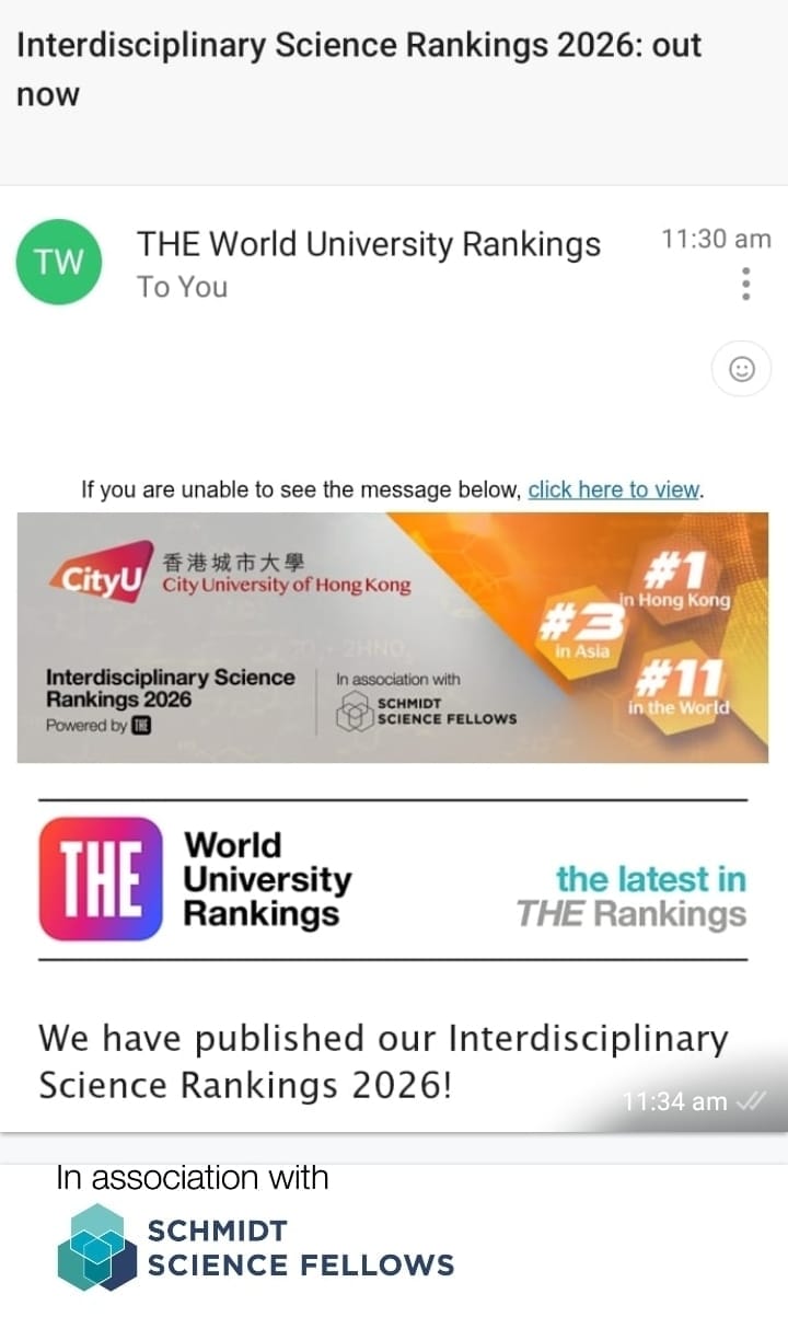 A Milestone for MIST: Featured in THE Interdisciplinary Science Ranking 2026