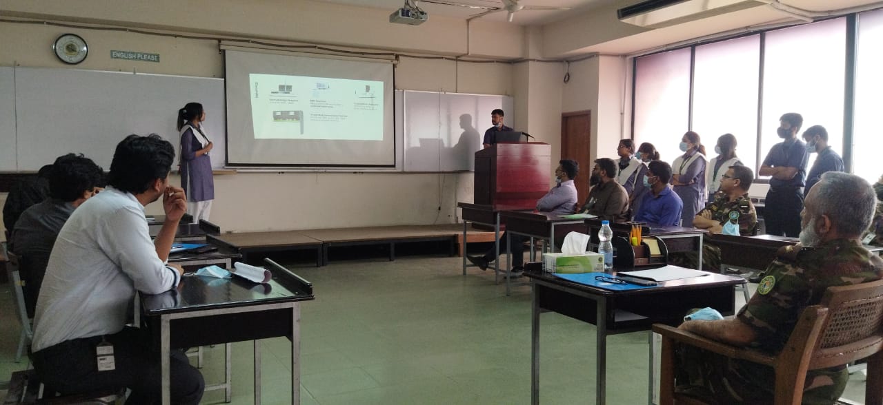 Final Presentation of Industrial Training for Level-3 students in JMI Syringes & Medical Devices Ltd., Evercare Hospital Dhaka, Combined Military Hospital, National Electro-Medical Equipment Maintenance Workshop & Training Centre (NEMEMW&TC) and Bi-Beat LTD respectively has taken place on 29th March, 2022 in the honorable presence of Head of the Department & respective faculties.