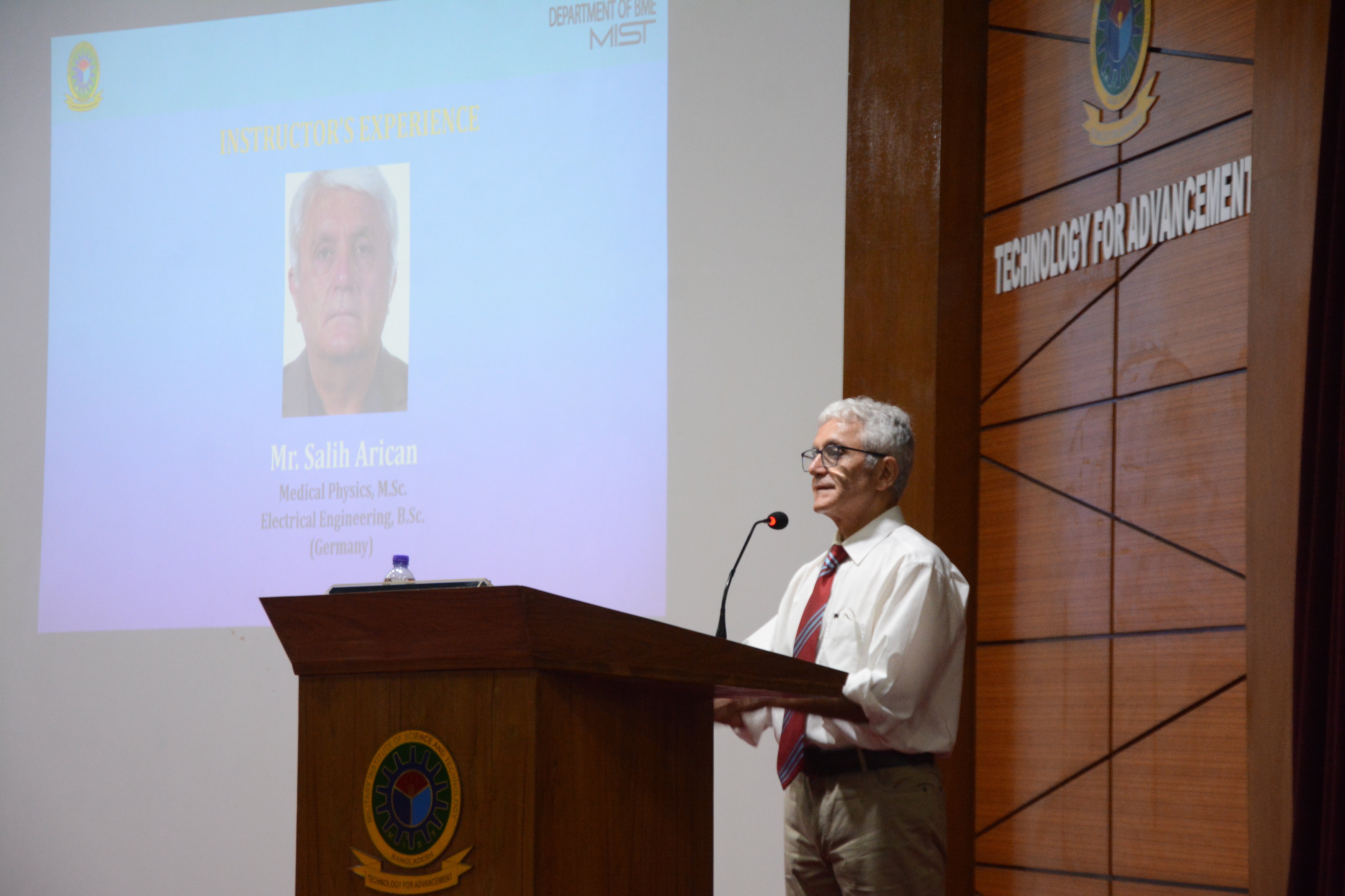 Quality Assurance, calibration, and maintenance of different medical imaging systems are mandatory for the safe diagnosis and treatment planning of patients and more critical for cases involved with radiation and radiotherapy. To aid in this sector and to disseminate knowledge, Dept of BME organized a Certification Course titled “Medical Imaging and Radiotherapy” by an experienced foreign professional from 25 October to 01 November 2022. Biomedical Engineers, Nuclear Engineers, Radiologists, and Medical technologists from various Universities and Institutions from various educational backgrounds participated in this course. The participants gathered practical hands-on knowledge from the expert Mr. Salih Arican.
