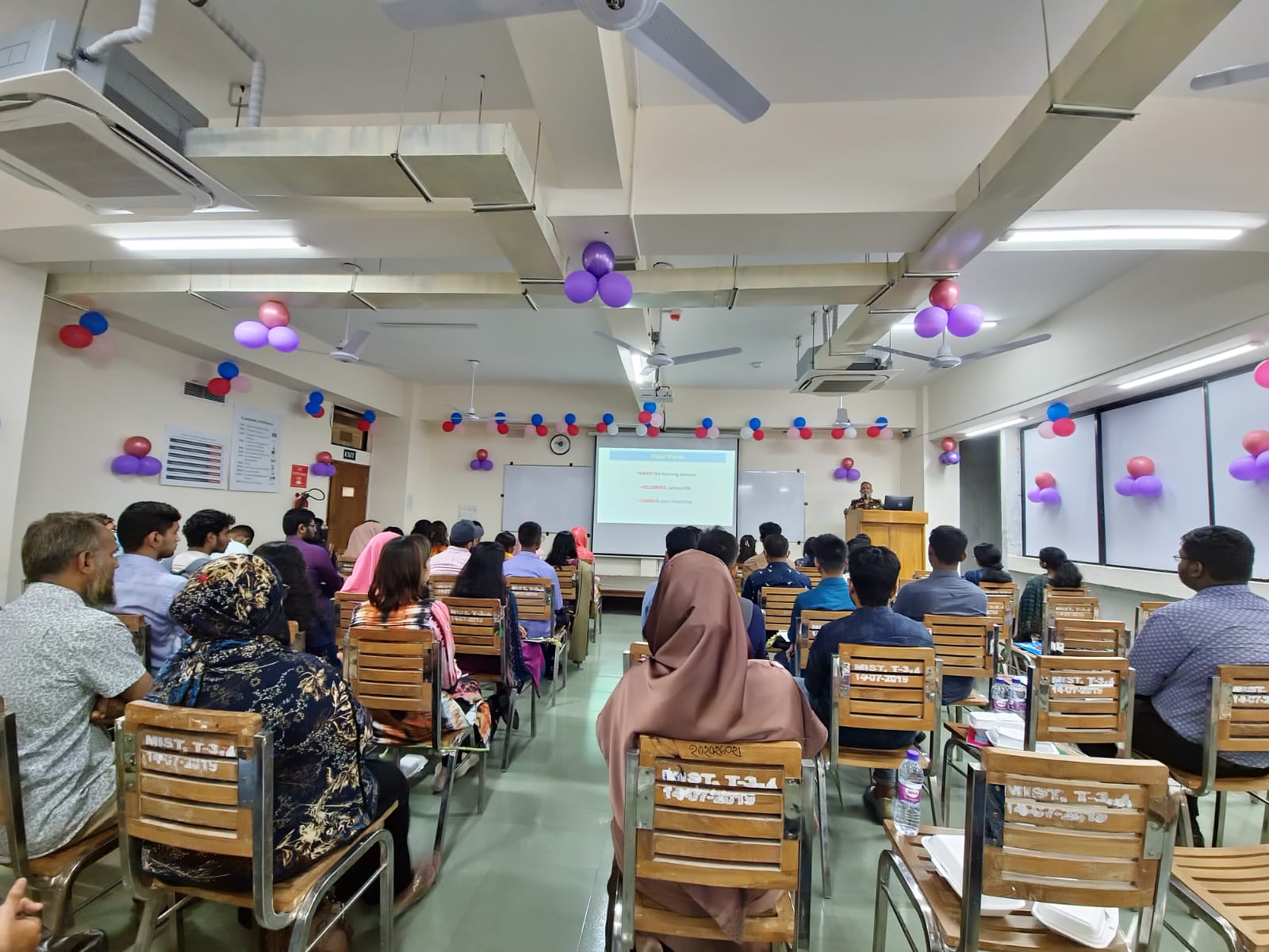 A spellbinding Fresher’s Launching Ceremony for all department students of the new academic session 2022-2023 was held on 7th May 2023 with the unstinting presence of the respected Comdt, MIST at the Multipurpose Hall centrally. Thereafter, newly admitted students, BME 9th Batch, lovingly received giving flowers and gifts from the immediate predecessor batch at the Department of Biomedical Engineering where the honorable Head of the Department along with esteemed faculty members were present. Finally, a riveting presentation with a video clip incorporating an eminent Departmental Visit (Classrooms and Laboratories) and an introduction session among faculties and students made the program delightful as well for the guardians.