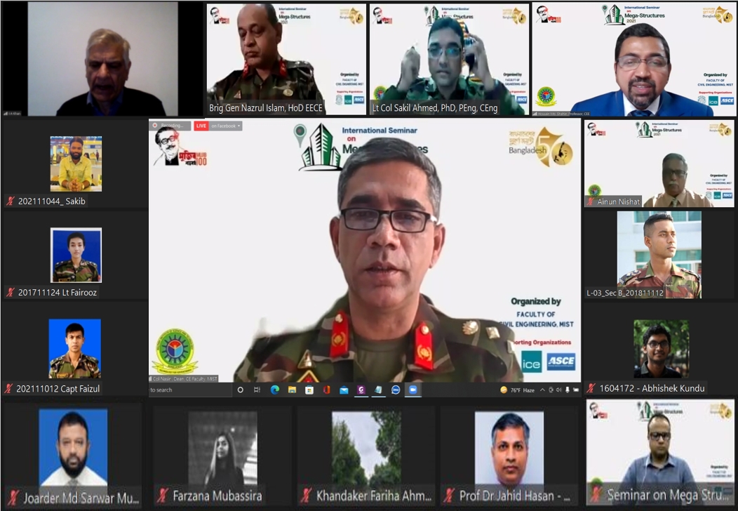 International Seminar on Mega-Structures 2021 was organized for the very first time by the Department of Civil Engineering of Military Institute of Science and Technology (MIST). In a time of pandemic to avoid any possible health issues and to ensure safety the “International Seminar on Mega-Structures 2021” was conducted on the online platform by Zoom and Facebook live. The event held on 12 December 2021 from 09:30 AM to 12:30 PM.