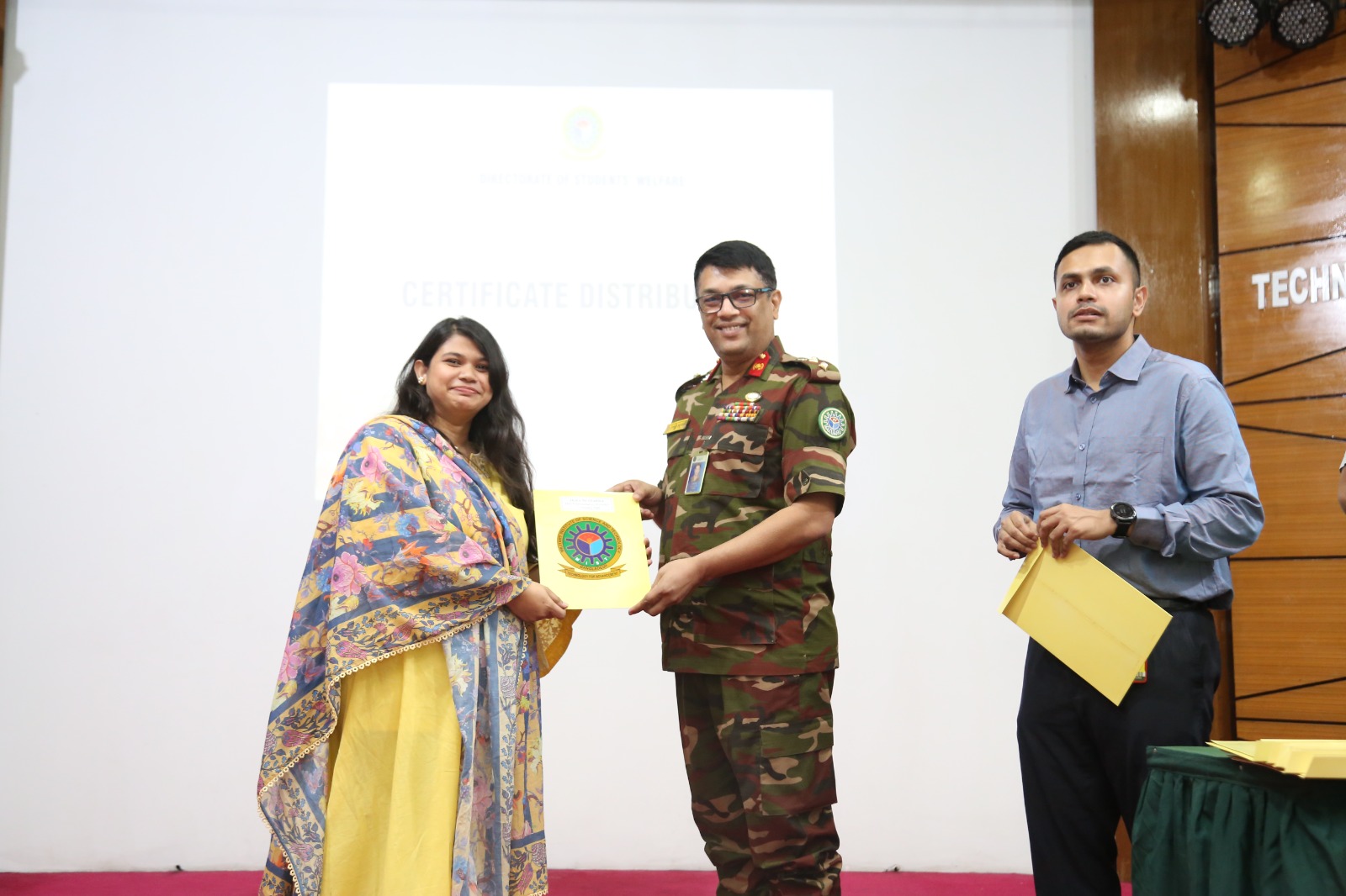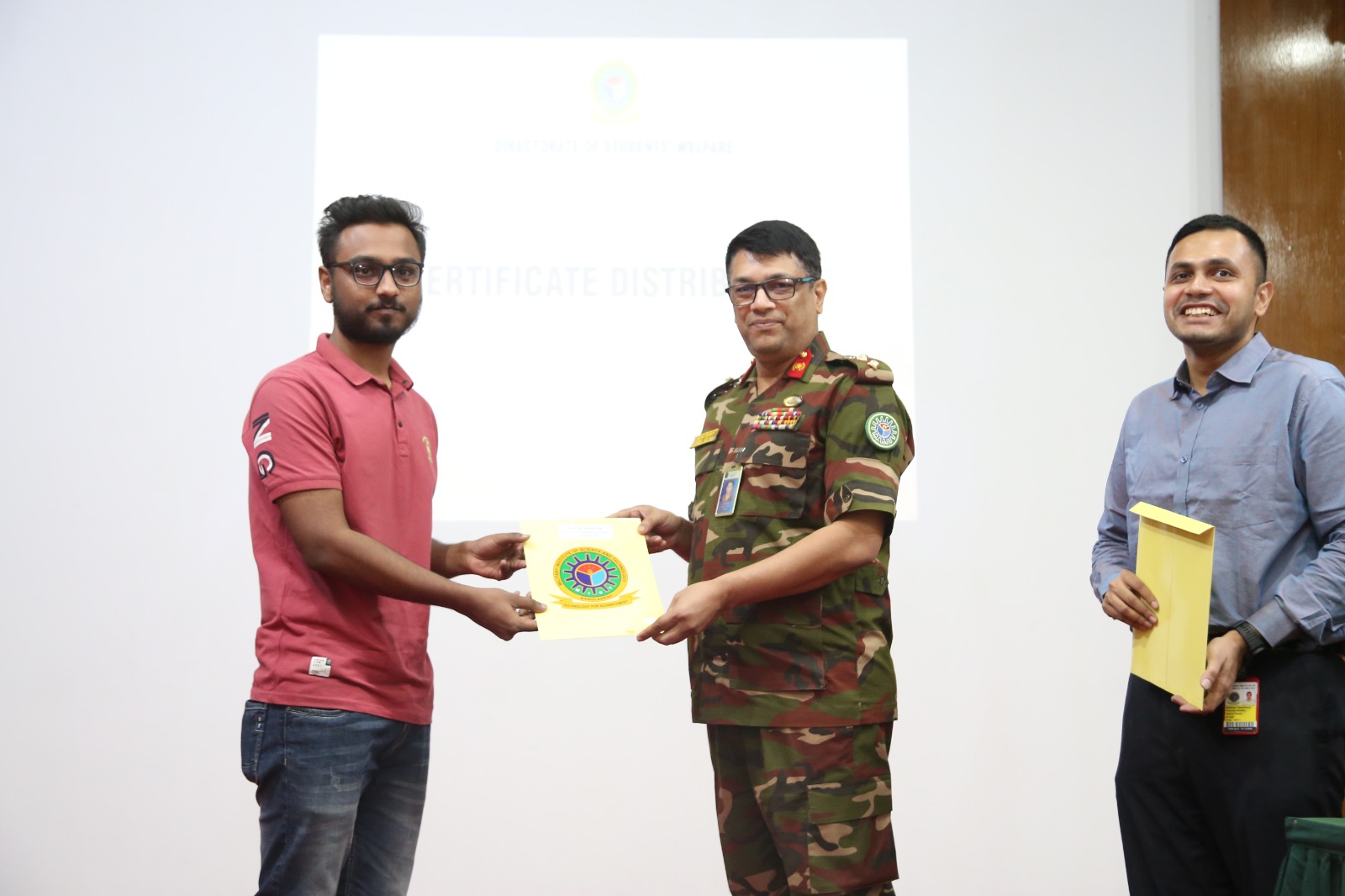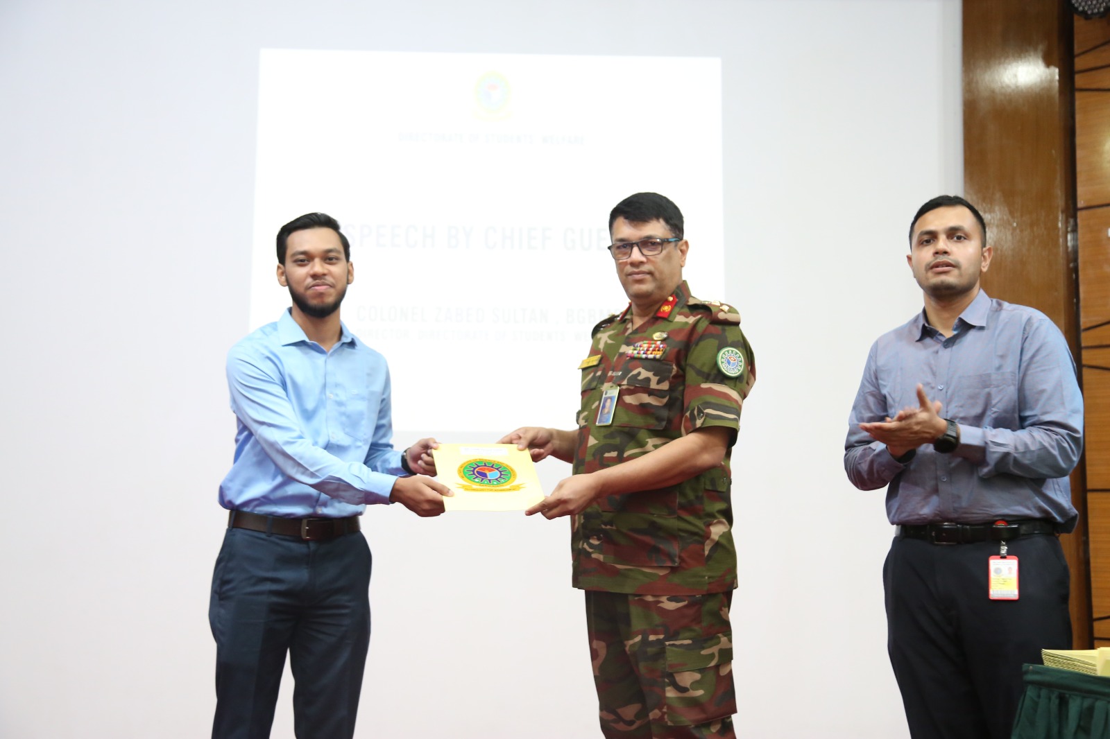 Certificate awarding ceremony of former representatives and club presidents was arranged by the present representatives, club presidents and the faculties and officers of the Directorate of Students’ Welfare on 2nd May, 2023. The chief guest of that event was the director of the Directorate of Students’ Welfare, Colonel Zabed Sultan, BGBMS. The program was hosted by the present representatives following the guests' welcome session. After that, all of the former representatives and club presidents received certificates at the ceremony. In the end there was a speech of respected DSW sir followed by a photo session with the guests and all the attendees of the event.