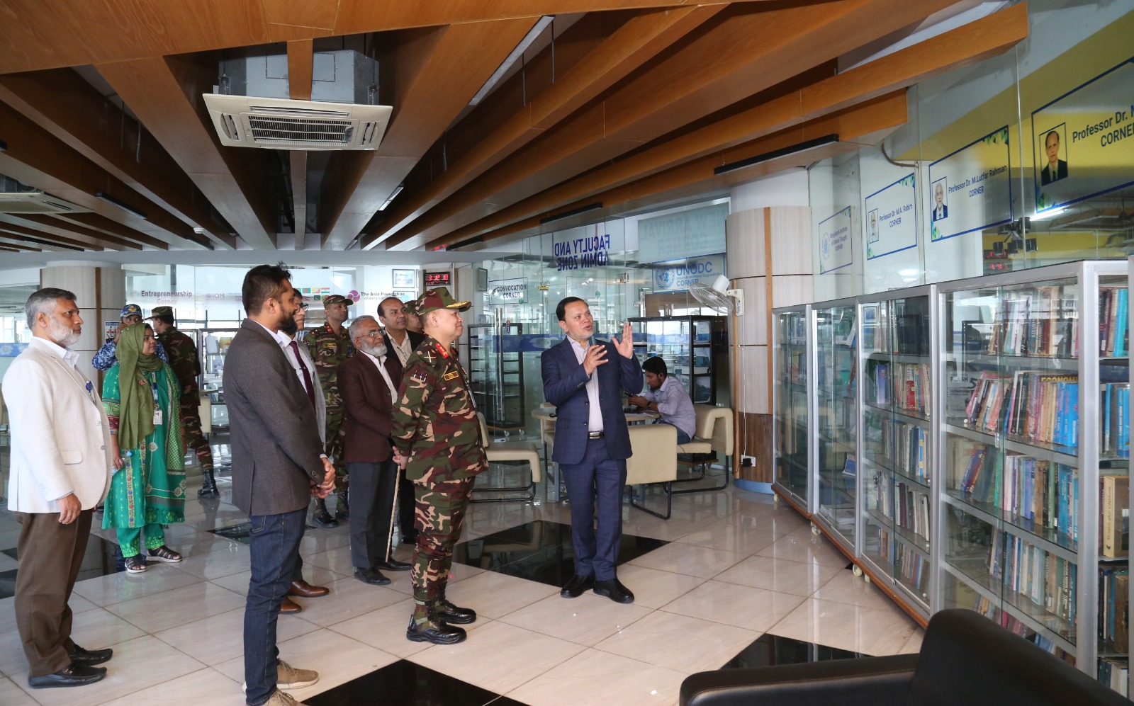 The delegation was warmly welcomed by the Pro Vice-Chancellor, Prof. Dr. Mohammad Masum Iqbal, followed by an engaging briefing session held in the august presence of Dr. Md. Sabur Khan, Chairman, Board of Trustees, and Prof. Dr. M. R. Kabir, Vice-Chancellor, DIU.