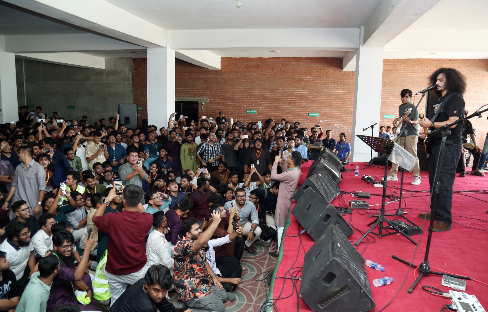 The excitement reached its peak with the highly anticipated musical performances. Two renowned guest bands, “Bagdhara” and “Odd Signature,” took the stage and delivered powerful, unforgettable shows that thoroughly enlivened the entire campus community.