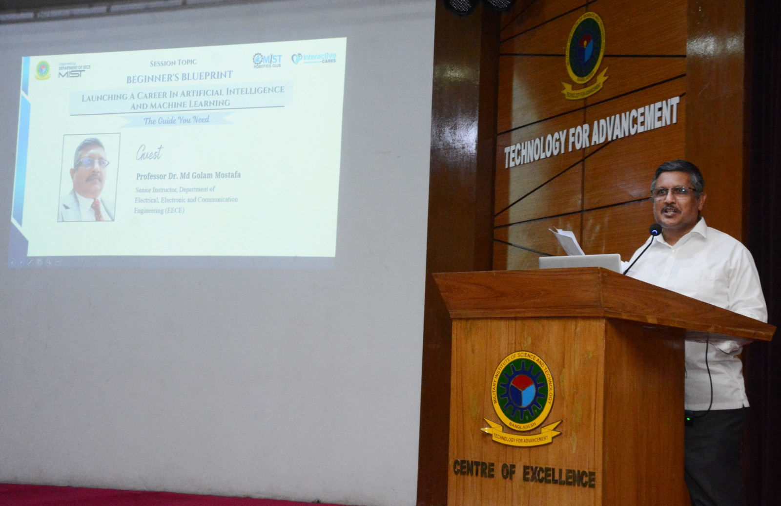 The MIST Robotics Club, in collaboration with Interactive Cares, successfully organized a special session titled “Beginner’s Blueprint: Launching a Career in Artificial Intelligence and Machine Learning – The Guide You Need” at MPH.