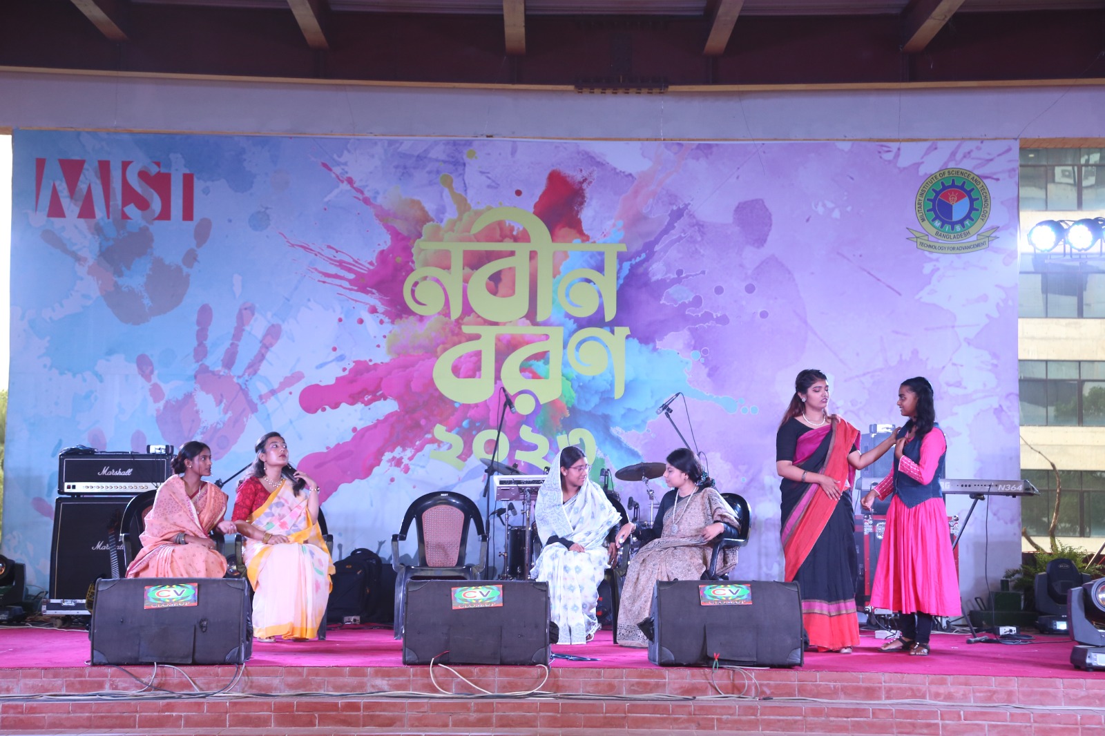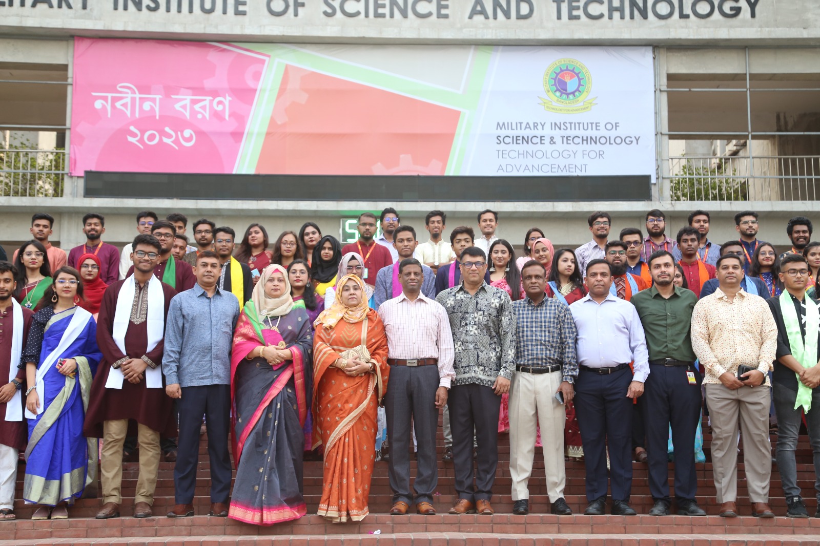 The Nobin Boron 2023 Ceremony was held in MIST plaza at 25th May, 2023 under the supervision of DSW office. The acting commandant sir Brig Gen Md Wahidul Islam,SUP,ndc,psc and commandant madam, Mst Taslima Khanum were the chief and special guest respectively. The program started with the distribution of sashes in between the freshers and performances of students of other academic levels at 3 pm. The main program started at 5:30 pm after the arrival of the chief and special guest with a small cultural segment and prize giving ceremony of the inter department cultural competition 2023. The speech given by our acting commandant was really influential and heart touching. Finally, the program was ended with the marvelous performance of the renowned band ‘Shironamhin’.