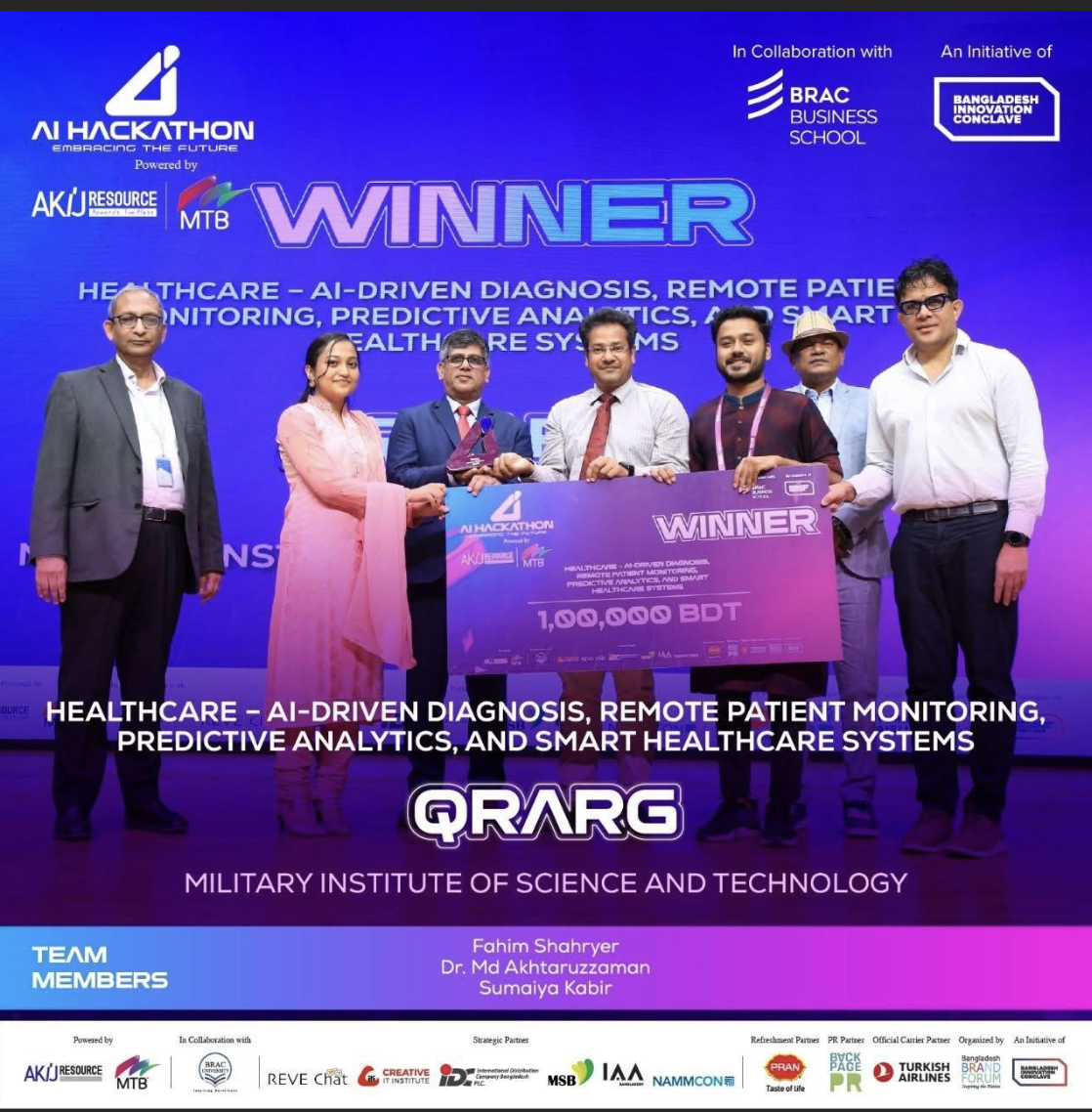 Team QRARG representing CSE, MIST is the winner of AI-HACKATHON 2025 (Healthcare category)-2