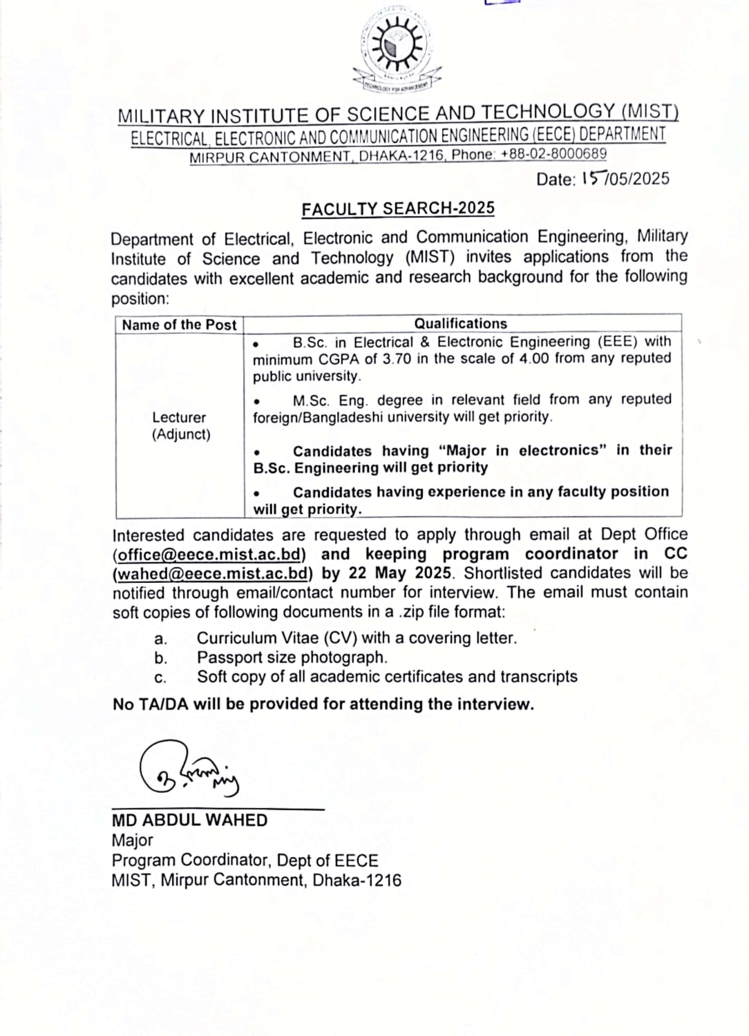 OTM-3 (Lab Equipment) Purchase Quotation Notice by Admin Wing, MIST