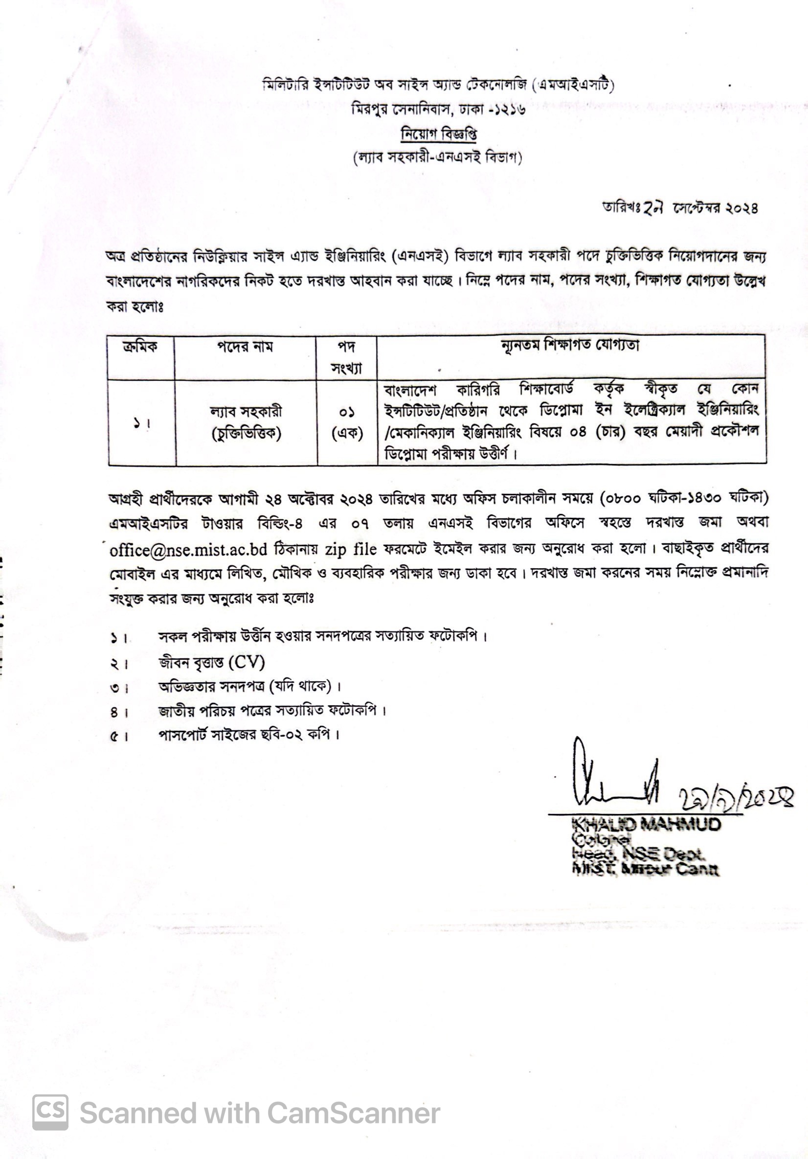 OTM-3 (Lab Equipment) Purchase Quotation Notice by Admin Wing, MIST