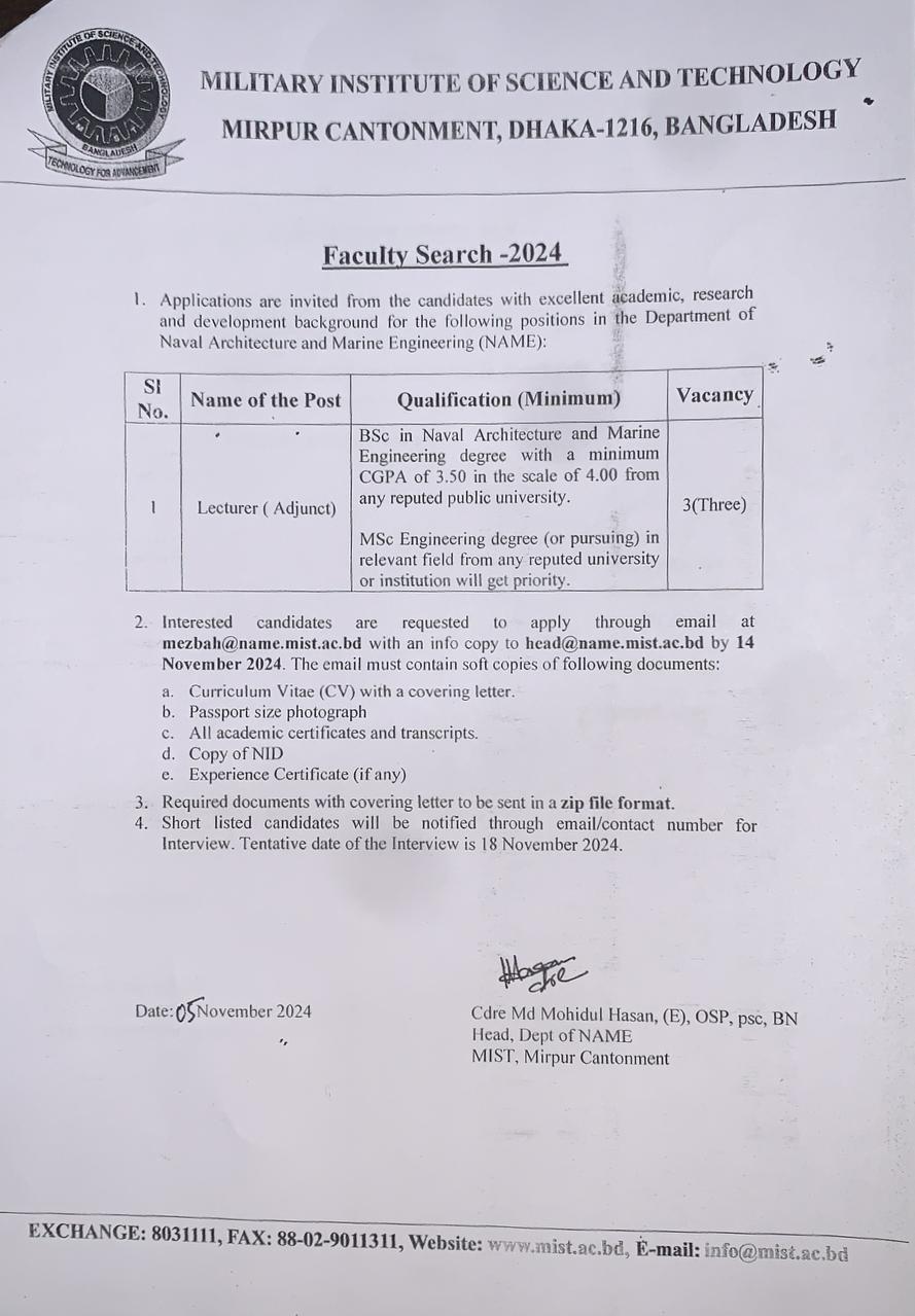 OTM-3 (Lab Equipment) Purchase Quotation Notice by Admin Wing, MIST