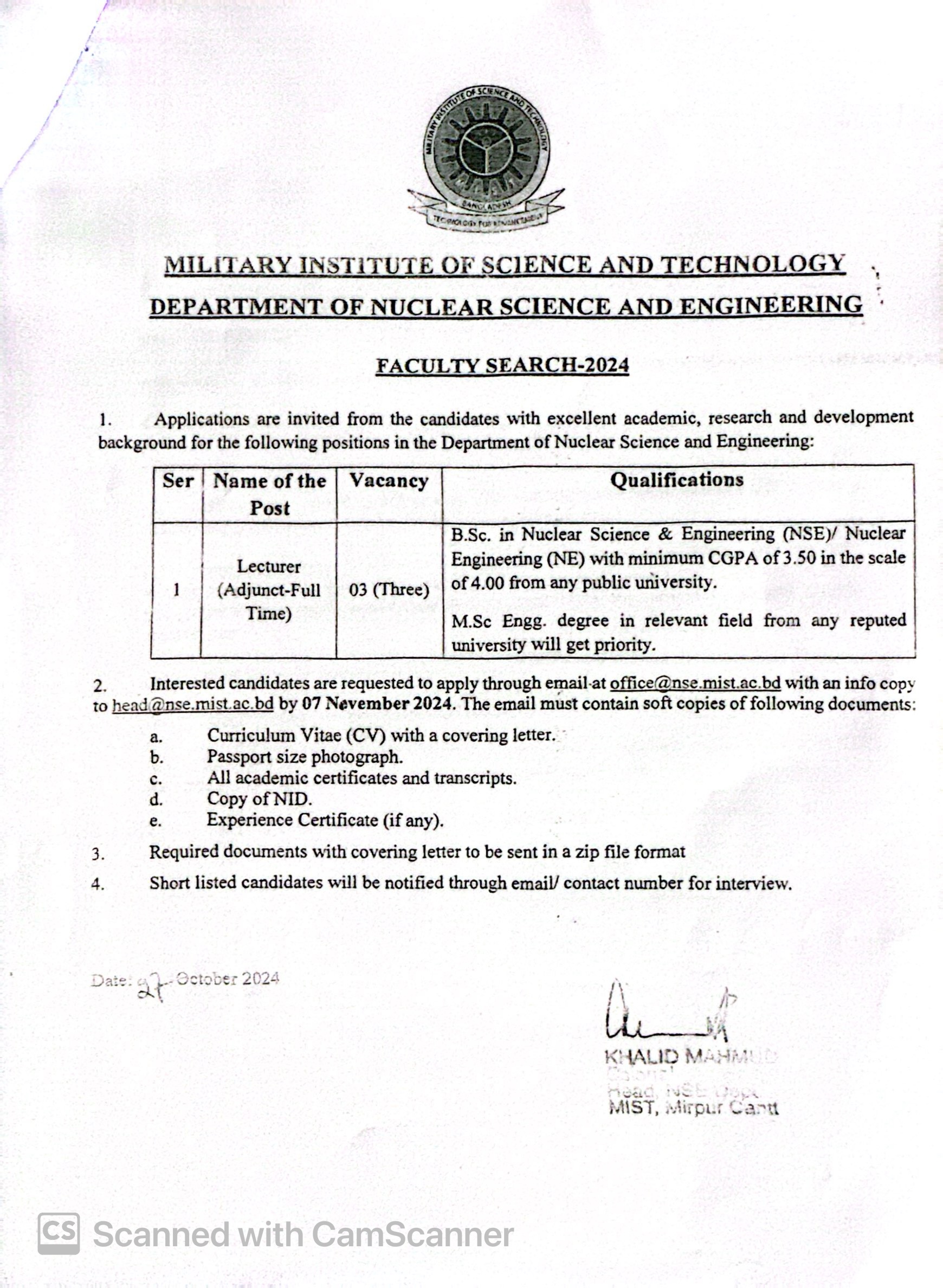 Employment Opportunity at Department of NSE