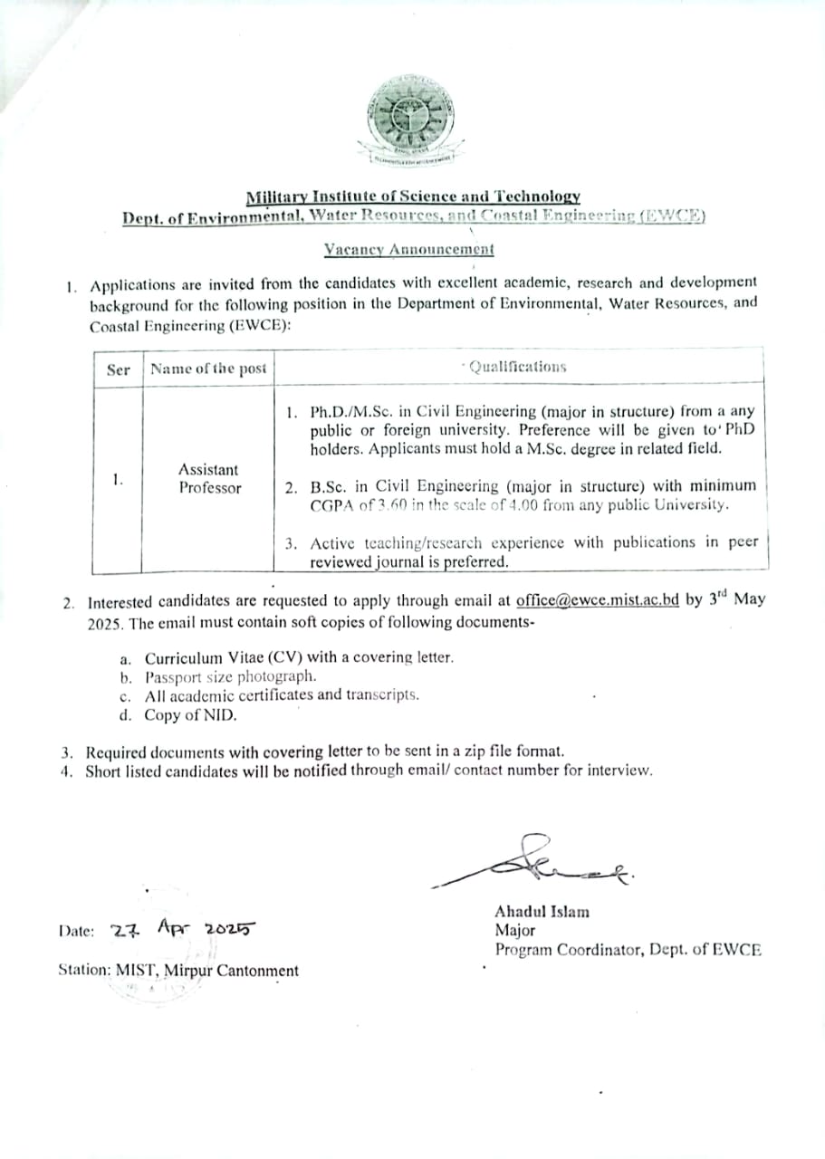 OTM-3 (Lab Equipment) Purchase Quotation Notice by Admin Wing, MIST