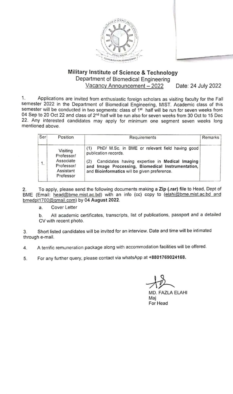 OTM-3 (Lab Equipment) Purchase Quotation Notice by Admin Wing, MIST