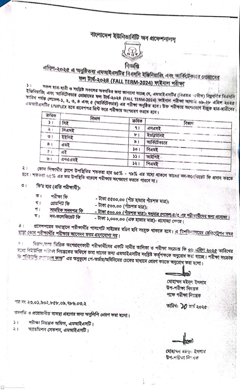 Notice Related to Term Final Exam (Fall-2024) and NC, DC Fine