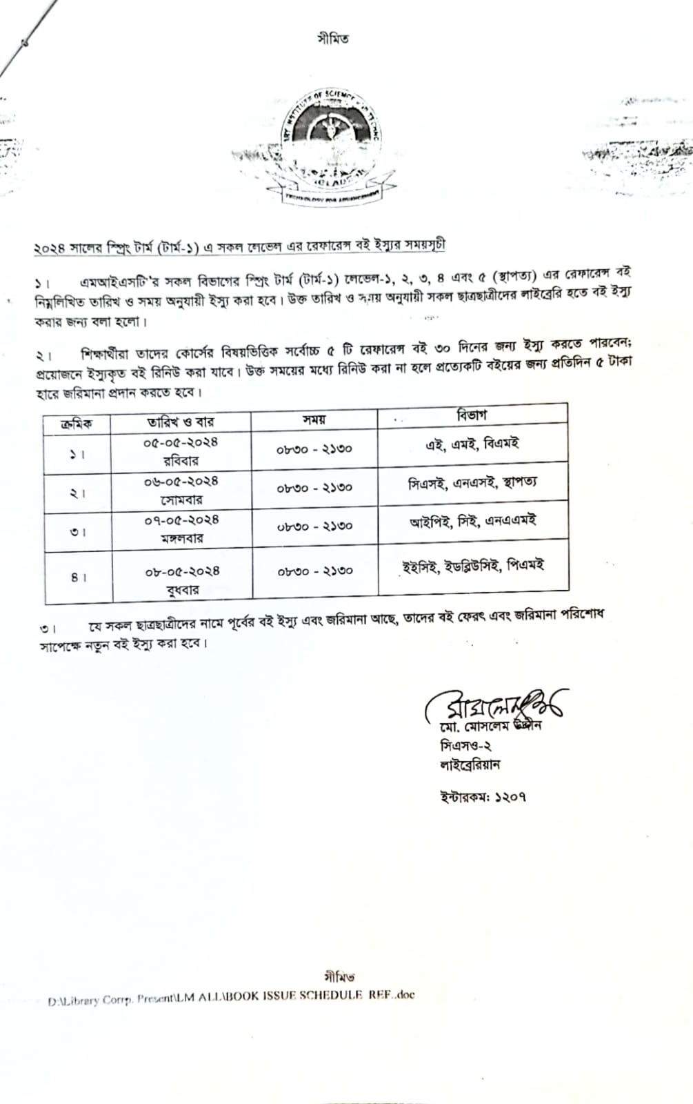 OTM-3 (Lab Equipment) Purchase Quotation Notice by Admin Wing, MIST